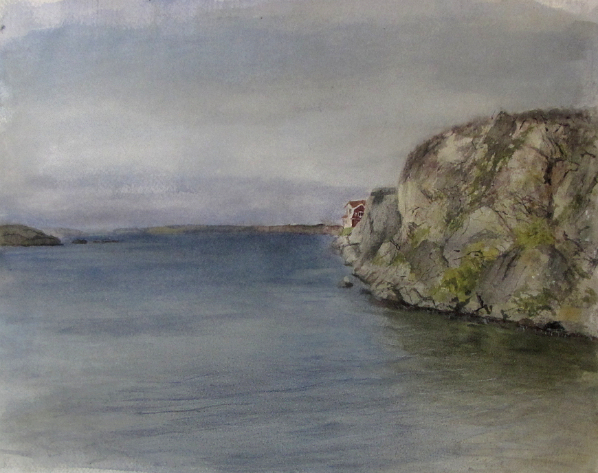 Stuga och stillhet ( Fiskebäckskil)Västkusten juli 2011. Målad på plats vid havet i trakten kring Fiskebäckskil och Lysekil |